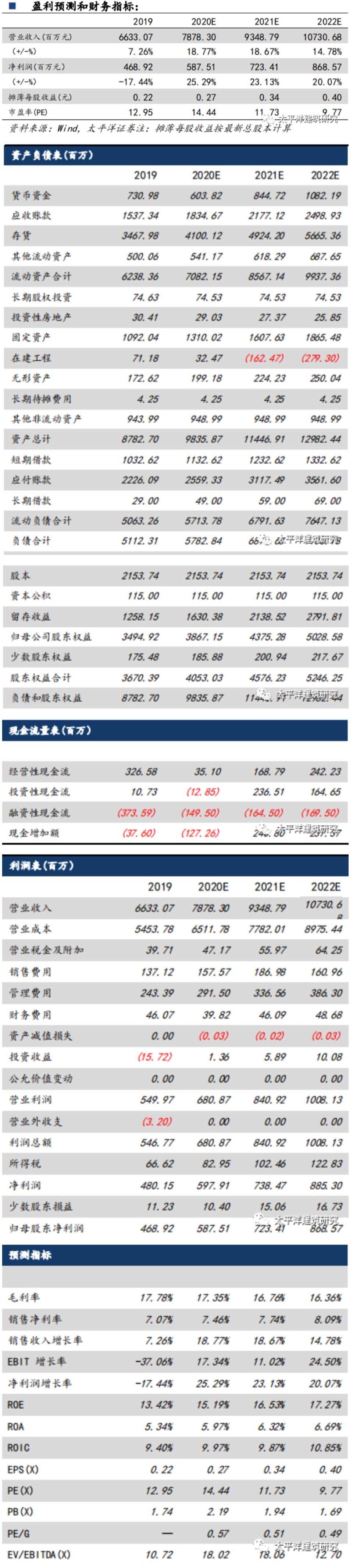 2020年公司生产基地投资稳步推进,主业发展稳健向上,万郡绿建加速招商入驻,进一步深化TOC理论应用,业绩有望快速释放。预计2020-2022年净利润分别为5.88亿、7.23亿、8.69亿,EPS分别为0.27/0.34/0.40元,对应PE分别为14.44/11.73/9.77。